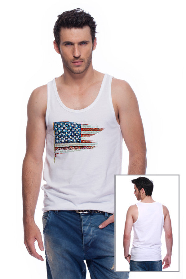 est une photo du fameux drapeau américain très original composé de boutons platinés retravaillés de façon "déchirée" par le team de Urbanik Art.